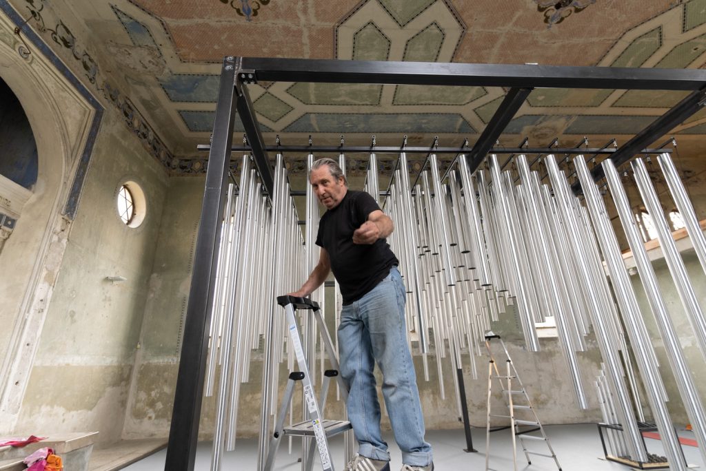 The work stands at the intersection of sculpture, music, architecture, and physics, continuing Baier’s lifelong exploration of vibration, movement, and form.